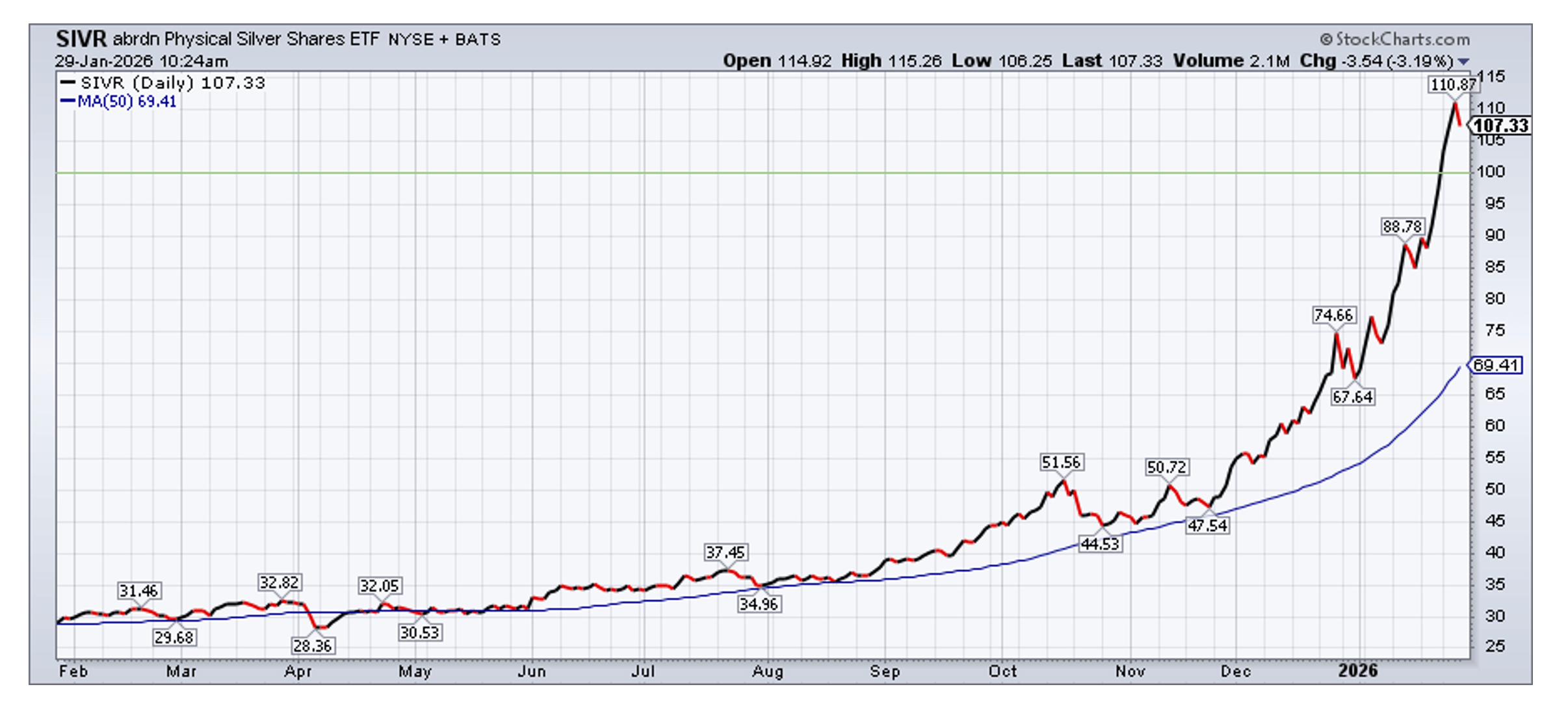 - Silver: Historically more volatile than gold, silver has amplified the move, consistent with its tendency to outperform during strong precious metal upcycles.